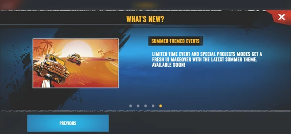 | 2017 | Mini John Cooper Update (v1.2.1) • Alps Update (v1.3.2) • Coachella Update (v1.4.0) • Black Market Update (v1.5.0) • Nepal Update (v1.6.0) • Porsche Update (v1.7.0) | |