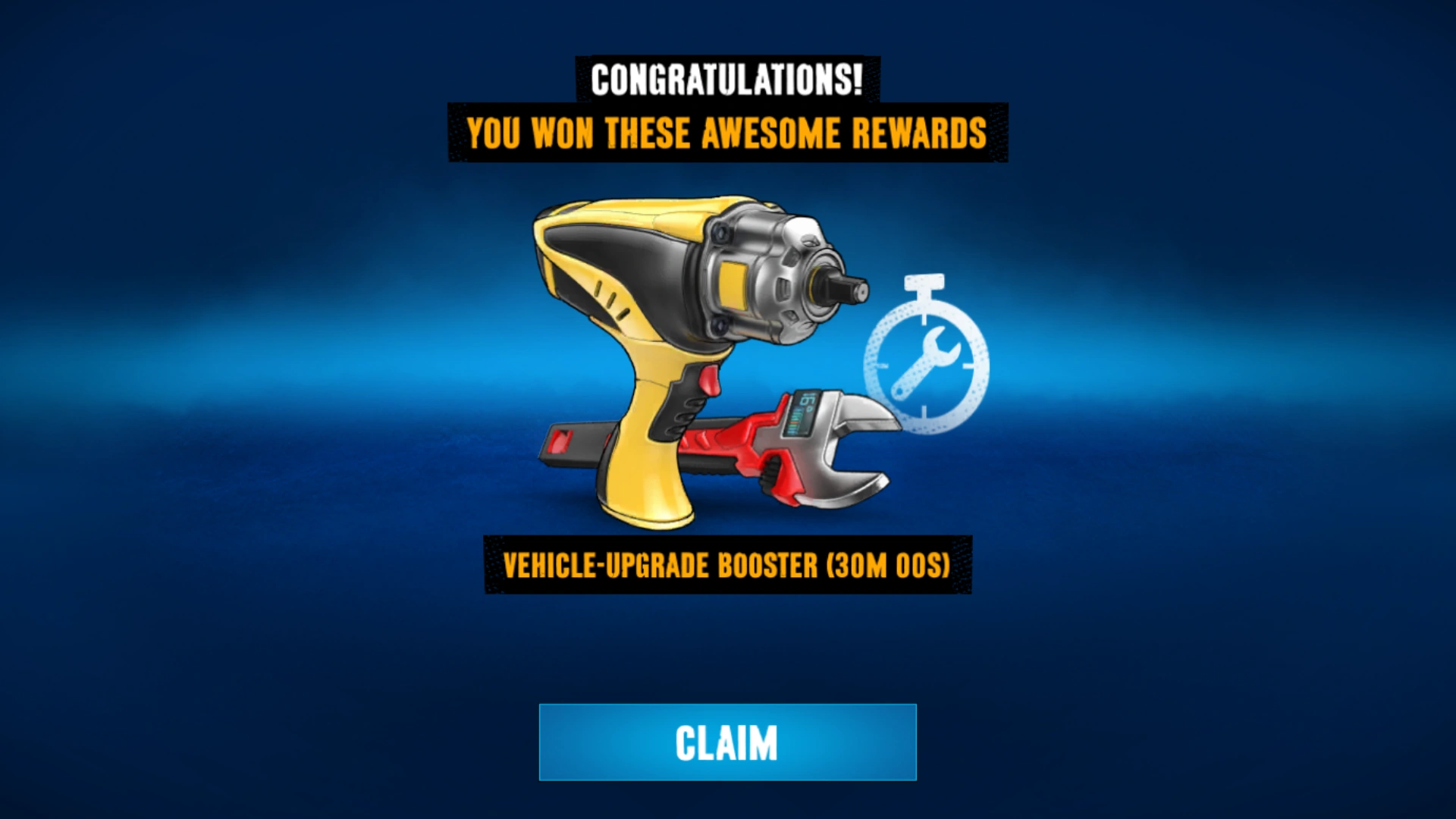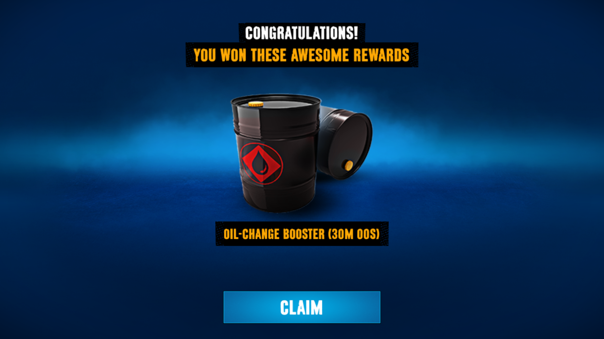 When a vehicle's oil is changed, players can reduce the waiting time by watching an ad to get an "Oil-Change Booster". This is not a booster in the common sense; it is only applied to the selected vehicle and reduces the waiting time by 30 minutes or (rarely) 1 hour.