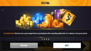 Several one-time purchase bundles were available during the event with each bundle giving Festival Coins and Fusion Coins. Later bundles would give Pro Kit cards and credits as well. Purchasing a bundle would unlock a larger bundle.