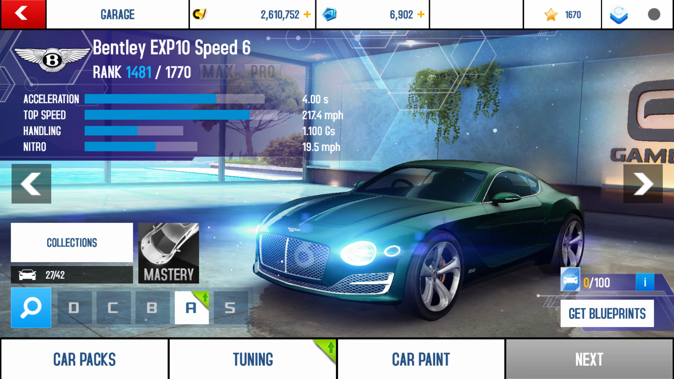 The Bentley EXP10 Speed 6 was added in the Research & Development Update as a high-end Class A car with the following statistics: