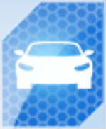 The blueprint depicts a car in front view with the left half of it (where the right headlight is) in a partial wireframe, similar to the promotional ads for the Research & Development events. Blueprints for motorcycles depict the vehicle from the right side with the left half (rear of vehicle) in the same partial wireframe.