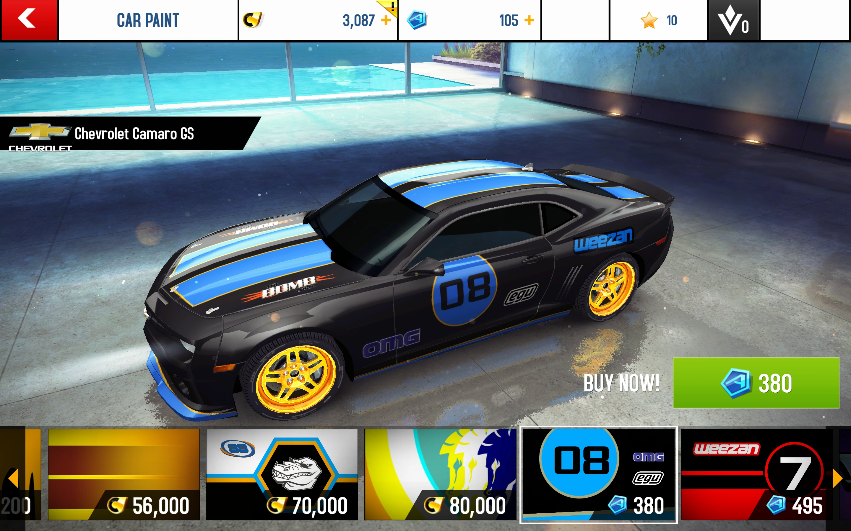 | Tier 3 | Dodge Challenger SRT8 • Dodge Charger SRT8 • BMW M3 GTS • Audi RS 5 Coupé • Lotus Evora S • BMW M6 Coupe • Aston Martin V12 Vantage • Alfa Romeo 8C • Aston Martin DBS • Shelby Cobra 427 S/C • Lamborghini Sesto Elemento |