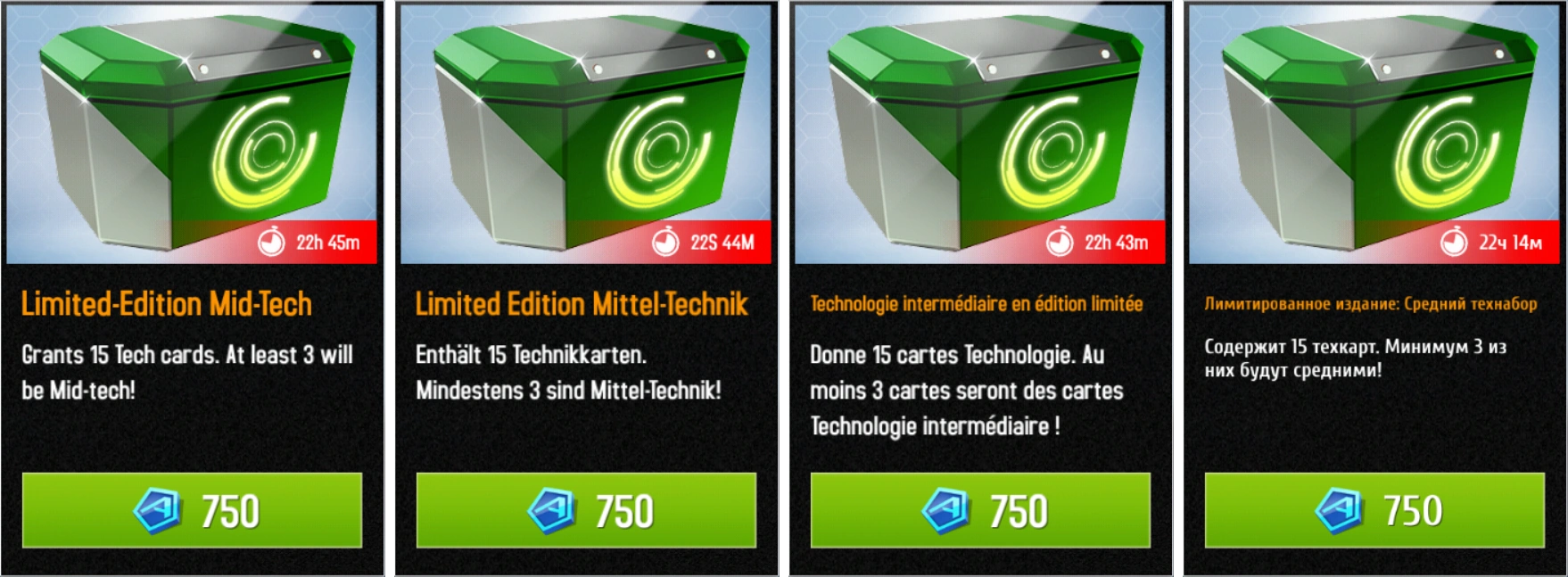 Limited-Edition Mid-Tech box, for example, is translated as follows (in standard font):