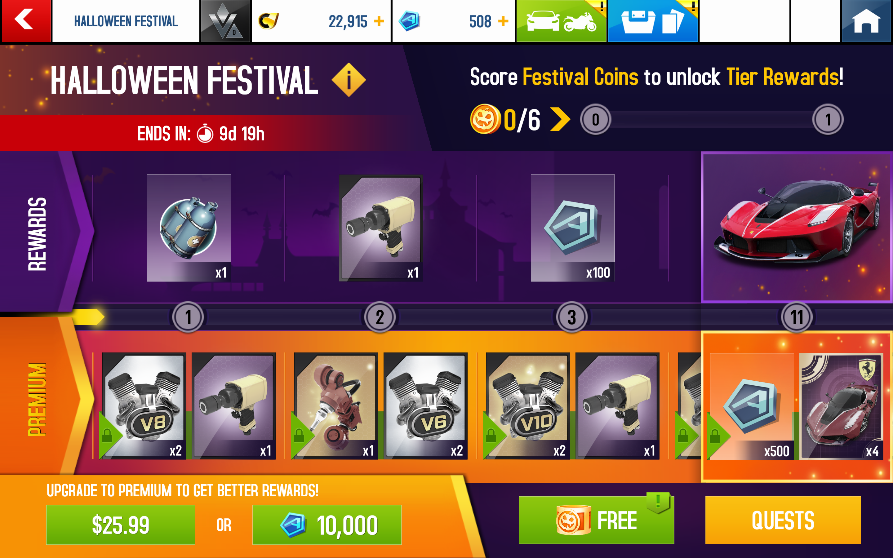 10,000 or an in-app purchase grants additional rewards when a new tier is reached. If the Great Festival Pass is purchased, all Premium rewards in completed tiers will be awarded.