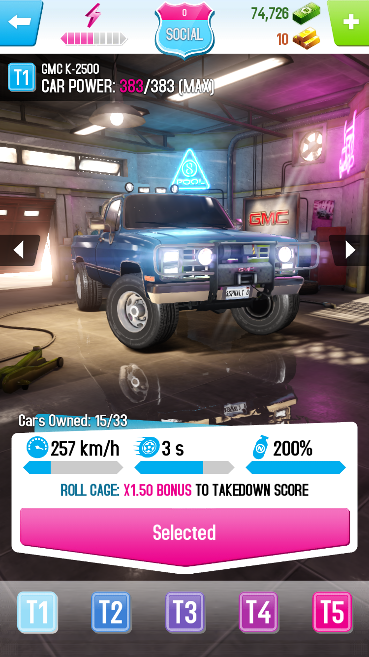 While the starter car, the Ford Mustang GT Fastback, can only master the first races of Eposide 1, the GMC K-2500 can be upgraded enough to earn the majority of Stars in this episode and also beat the boss car, the DeLorean DMC-12 to reach Episode 2.