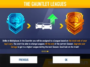 Warning 1: The combined rank is based on the top five vehicles that the player owns, regardless of whichever vehicles they have selected for Gauntlet races. Hence, the player is forced to compete with their best vehicles and can't compete at lower leagues.