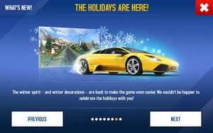 The Holiday Update, also known as the Transylvania Update, is the 30th update for Asphalt 8: Airborne.