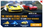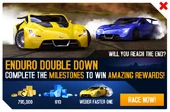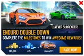 - The first time the event was relaunched, mere days before the Munich Update, after which a bug surfaced that erased all vehicles' MAX upgrades on iOS and Android, particularly on vehicles not own by the player. Affected players received the car, upgraded to S1565 (3333 0000), for free (regardless of progress in the event) from Gameloft Customer Care as compensation.