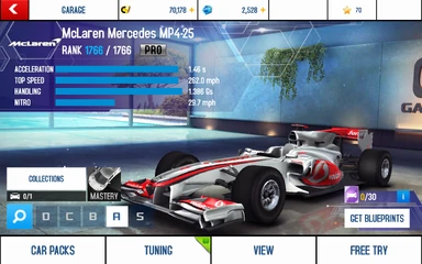 - All of the McLaren Formula One race cars have only 10 Pro Kit Levels instead of the usual 5 MAX Upgrades.