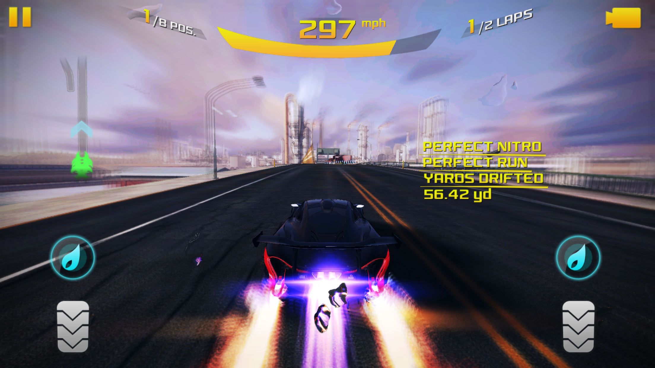 - Perfect Nitro: Triggered in the same way as in Asphalt 8. Gives a slightly better boost in acceleration, and is best used around turns and rough terrain in order to keep speed.