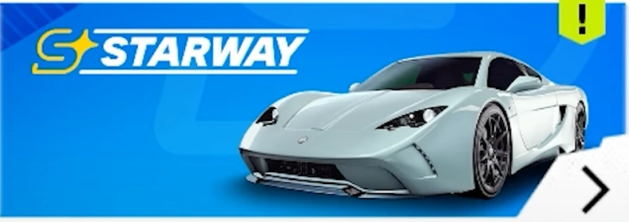 Introduced in the New Breed Rivals Update. Starway is a time-limited event that features previous Special Event vehicles with their blueprints being given when a stage has been completed. Starway events are in sequence, with each event lasts a certain amount of days.