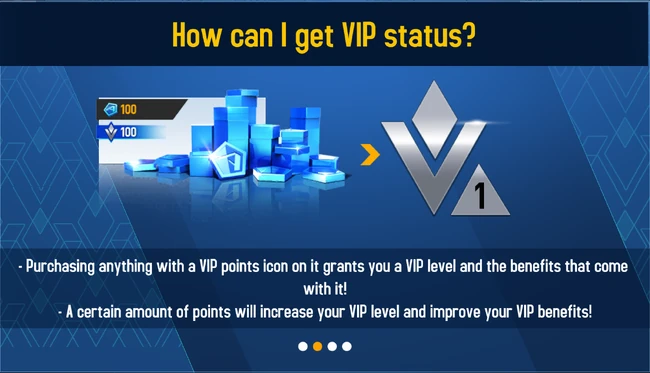 - Purchasing anything with a VIP points icon on it grants you a VIP level and the benefits that come with it!